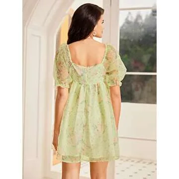 Show more Elevate your wardrobe with the enchanting WDIRARA Women's Floral Print Square Neck Puff Short Sleeve High Rise Flare Organza Dress in vibrant yellow. This stunning mini dress is the epitome of romantic elegance, adorned with a beautiful floral print that adds a cheerful touch to any occasion. Designed with carefully crafted puff sleeves and a flattering square neckline, this piece not only highlights your femininity but also ensures you stay on-trend. The high rise and flare hem provide a flattering silhouette that sways gracefully, allowing you to exude confidence with every step you take.