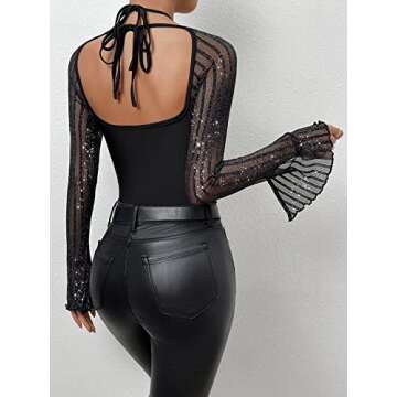Show more Introducing the ultimate blend of elegance and comfort - this stunning halter neck top is not just a clothing item, but a statement piece crafted for the fashion-forward individual. With its unique contrast mesh detailing and eye-catching sheer sleeves, this top redefines chic style for every occasion. The back features a beautiful knot design that accentuates your silhouette while keeping things playful and fresh. Ideal for both formal events and casual meet-ups, its sparkly finish ensures you’ll stand out wherever you go.