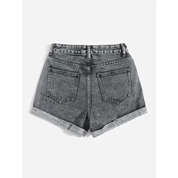 WDIRARA Women's High Waisted Ripped Rolled Hem Distressed Striaght Denim Jean Shorts Grey S