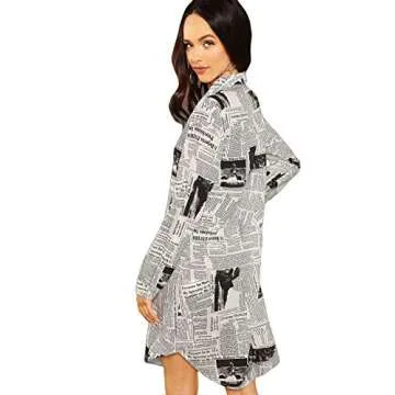 WDIRARA Women's Newspaper Print Long Sleeve Button Down Casual Shirt Short Dress Black and White XS
