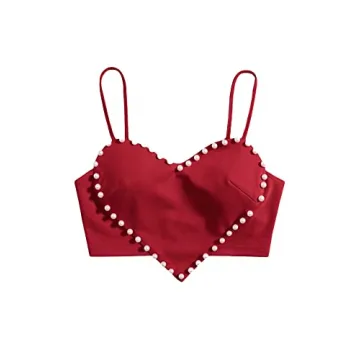 Introducing the WDIRARA Women's Pearls Sleeveless Asymmetrical Hem Heart Crop Cami Top in a stunning burgundy shade that combines elegance with a hint of playful charm. This sexy camisole is designed with a beautiful pearl heart detail that adds a unique touch to your outfit. The v-neckline and backless feature provides an alluring silhouette, while the asymmetrical hem offers a modern twist. It’s made from a fabric that stretches for a perfect fit, ensuring comfort and style in equal measure....