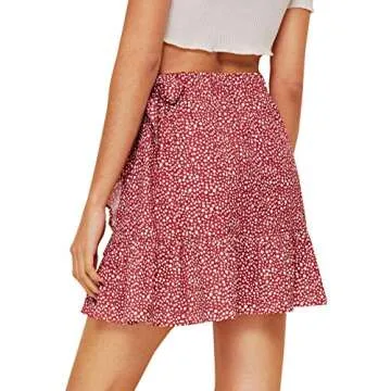 Step into the spotlight with the WDIRARA Women's Polka Dots Knot Wrap Side Ruffle Mini Skirt, a fashion staple designed for the trendy and playful woman. This eye-catching red mini skirt features a delightful polka dot pattern that adds a fun retro twist to your wardrobe. The wrap-around design offers an element of ease and comfort, allowing you to find your perfect fit. With a flirty side ruffle, this skirt provides just the right amount of movement and feminine charm, making it ideal for...