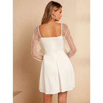 WDIRARA Women's Polka Dots Mesh Long Sleeve A Line Mini Flowy Wedding Guest Bridesmaid Dress White XL