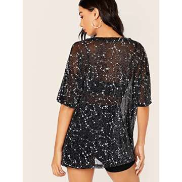 WDIRARA Women's Sheer See Through Short Sleeve Mesh Top Tee Blouse Black Galaxy S