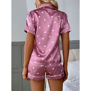 Indulge in comfort and style with the **WDIRARA Women's Sleepwear Short Sleeve Button Shirt and Shorts Pajama Set**, elegantly designed in a soft and luxurious satin fabric. This beautiful dusty pink attire, adorned with delightful heart patterns, ensures you not only look great but also feel amazing. With a relaxed fit that features a short sleeve button-up shirt and coordinating shorts, this set is your perfect companion for a cozy night's sleep or a laid-back day at home. The fabric boasts just the right...