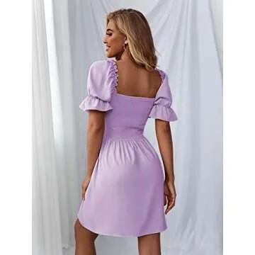 Show moreDiscover the beauty and versatility of the WDIRARA Women's Square Neck Flounce Short Sleeve Shirred Ruffle Hem Dress, where style meets comfort for women of all ages. Designed with a chic square neckline and elegant short sleeves, this dress enhances your femininity while ensuring you feel at ease throughout the day or night. The shirred waist adds a flattering touch to any body type, while the delightful ruffle hem brings a playful element to your look. Ideal for various occasions, from casual brunches to festive parties, this dress is an essential addition to your wardrobe.