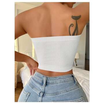 Show moreIntroducing the WDIRARA Women's Striped Textured Bandeau Bras, an exquisite piece designed for the modern woman who values both comfort and style. Crafted from high-stretch knitted fabric, this strapless bralette perfectly combines a snug fit with a chic ribbed texture, ensuring you remain fashion-forward without sacrificing support. Featuring a solid color backdrop, it's ideal for layering under any outfit, providing a seamless look that complements every silhouette. Whether you're lounging at home or enjoying a light workout, this bandeau bra is your go-to companion, blending functionality with trendy aesthetics.