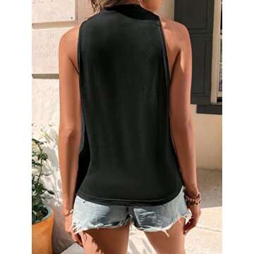 WDIRARA Women's Wrap V Neck Sleeveless Tank Top Summer Casual Pleated Blouse Black L