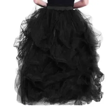 WDPL Women's Long Skirt Gathered Ruffles Tulle Slit Side Evening Party Skirts Medium Black