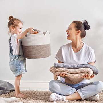We Care Vida Storage Baskets - Decorative Blanket basket for Living Room | 17,3 W x 13,8H | Made from Natural Cotton Woven Rope (Gold)