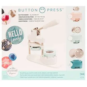 We R Memory Keepers, Button Press Bundle, Includes Button Press, Small, Medium, Large Press Insert and Cutting Insert, 30 Buttons, 30 Foam Stickers, Make Pins, Buttons, Badges, Keychains and More