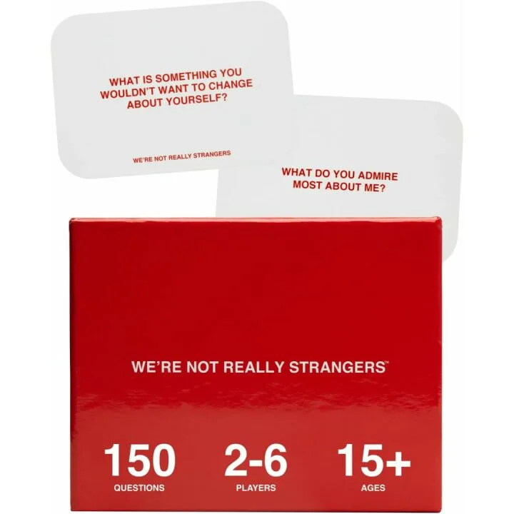 Show more The 'We're Not Really Strangers' card game is designed to bring people closer together through meaningful conversations. Created by the innovative team at Amazon.com, this game features 150 conversation cards that are perfect for adults, teens, couples, and even strangers. The cards are beautifully crafted to encourage open, honest, and deep discussions, making this game an excellent choice for family parties, game nights, or date nights. Suitable for ages 15 and up, and catering to 2-6 players, this game promises to create memorable experiences and strengthen connections among players.