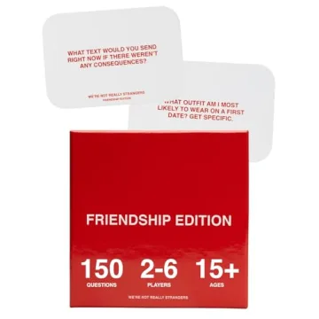 Show more Introducing the **WE'RE NOT REALLY STRANGERS Friendship Edition Card Game**—a transformative experience designed to help you and your loved ones forge authentic connections through meaningful conversations. This beautifully crafted card game offers a unique blend of fun and depth, enabling players to engage in heartfelt discussions that deepen bonds and expand understanding. With **150 conversation cards**, wildcards, and two Transparent "Dig Deeper" cards, it is specifically tailored for adults and teens looking to enhance their social interactions during game nights, date nights, or family gatherings.