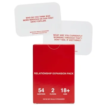 Show more Discover a unique way to deepen your connections with the WE'RE NOT REALLY STRANGERS Relationship Expansion Pack. This innovative card game is designed specifically for couples, friends, and those looking to foster genuine communication and understanding in their relationships. With 54 thought-provoking conversation cards and additional wildcards, you'll unlock new layers of your relationships with insightful and often challenging questions that prompt honesty and reflection. Each card is crafted to encourage you to explore your thoughts and feelings in an engaging, almost game-like way, making reflection not just insightful but also enjoyable.