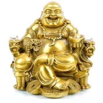 Show more Introducing the WEALTHCOMING Fengshui Decor Laughing Buddha Statue, a stunning representation of happiness, wealth, and good fortune. Handcrafted from casting brass, this exquisite sculpture showcases the timeless craftsmanship of traditional techniques, ensuring not only durability but also a captivating aesthetic appeal. With its finely polished finish and intricate details, this statue serves as a beautiful centerpiece for any room, whether in your home or office. The Laughing Buddha, depicted here seated on an emperor's chair, symbolizes prosperity, joy, and abundance, making it an ideal addition to your decor.