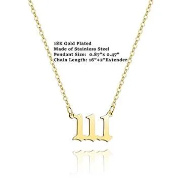 Wealthmao Angel Number Necklace for Women 000 111 222 333 444 555 666 777 888 999 Gold Plated Stainless Steel Pendant Choker Necklace Chain Numerology Jewelry (111-Gold)