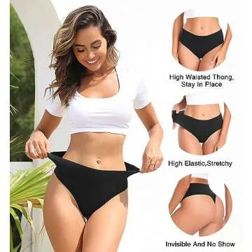 Wealurre Womens Underwear High Waisted Seamless Thongs for Women Breathable No Show Panties for Ladies 6 Pack (Black,L)