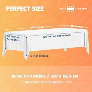 Each tablecloth measures 60x126 inches, designed specifically for 8-foot rectangular tables.