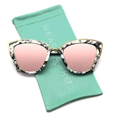 WearMe Pro Womens Cat Eye Mirrored Reflective Lenses Oversized Cateyes Sunglasses (Marble White Frame/Mirror Pink Lens, 54)
