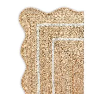 Weaving Village Wave Scalloped Natural Jute Rug Boho Jute Rug Entryway Runner Rug Farmhouse Scallop Rug, Off White (3'x5')