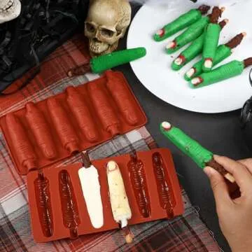 Webake Halloween Witch Finger Chocolate Mold, 6-Cavity Finger Pretzel Rod Molds for Chocolate, Pretzel, Cookie, Pack of 2