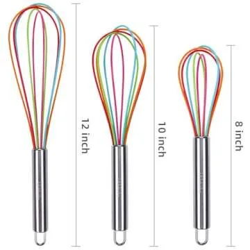 Show moreIntroducing the Webake Silicone Whisk Set, a vibrant and practical solution for all your culinary needs! This beautifully crafted set of four whisks combines both elegance and utility, designed to enhance your cooking experience in the most delightful way. With its colorful silicone coating, this set not only adds a splash of joy to your kitchen but also brings you the safety of BPA-free materials, ensuring every meal you prepare is health-conscious and worry-free. Each whisk is equipped with a durable stainless steel handle that provides excellent grip and control, catering to even the most intricate cooking tasks.