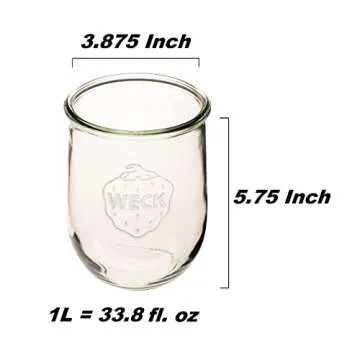 Weck Jars - 33.8 fl. oz Weck Tulip Jars 1 Liter - Sour Dough Starter Jars - Large Glass Jars for Sourdough Suitable for Canning and Storage - (2 Jars, Glass Lids & Wooden Lids)