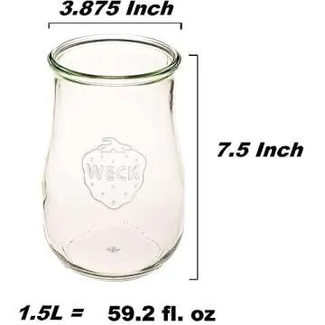 Weck Jars - 59.2 fl. oz. Weck Tulip Jars 1.5 Liter - Sour Dough Starter Jars - Large Glass Jars for Sourdough - Starter Jar with Glass Lid Wide Mouth - Suitable for Canning & Storage - (2 Jars)