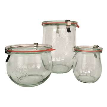 Introducing the Weck Jars, a versatile storage solution that combines functionality with aesthetic appeal. This combination pack features three unique sizes, making them the ideal choice for any kitchen enthusiast or food prepper. Crafted from high-quality glass, these jars boast a thick, durable construction that ensures longevity and elegance. Whether you're using them for fermenting sourdough, storing spices, or displaying culinary creations, these jars stand out as a reliable option.