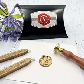Show moreIntroducing the ultimate Wedding Custom Wax Seal Kit, a perfect blend of elegance and personalization for your special day. This exquisite kit includes a premium stamp with a rich Wood Handle and replaceable Brass die, making it your go-to choice for creating stunning wax seals. Your Custom Wax Stamp features your initials elegantly intertwined with an '&' symbol, encapsulated in beautiful traditional scrolls. Crafted with precision in the USA using state-of-the-art laser engraving technology, the resulting details are not only deep and rich but also ensure a clean, concise imprint in the wax.