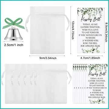 Wedding Party Favors Including Wedding Bells with Cards and Carry Bags Mini Silver Kissing Bells Wedding Reception Supplies (300 Pieces)