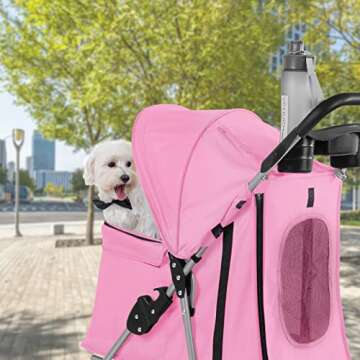 Wedyvko Pet Dog Stroller, 4 Wheel Foldable Cat Dog Stroller with Storage Basket, Handle 360° Front Wheel Rear Wheel with Brake for Small Medium Dogs & Cats (Pink)