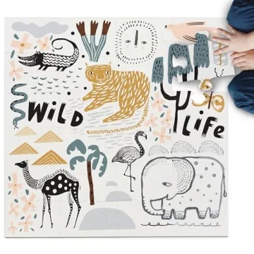 Wee Gallery Wild Life Floor Puzzle, 24 Large Pieces, Durable Jumbo Jigsaw Floor Puzzles for Beginner, Toddlers, Preschool Kids, Learning Toy, Cognitive & Motor Development Activities, Brain Games