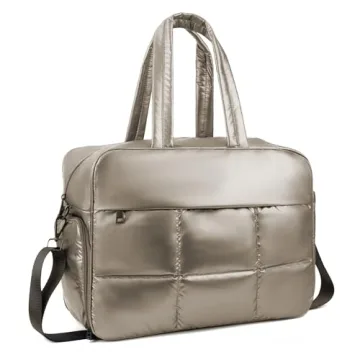 Weekender Fluffy Bag Quilted Nylon Puffer Tote Bag Personal Item Bag for Airlines Overnight Bag Gym Bag