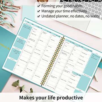 With a professional design, each two-page spread provides ample space for scheduling, complete with a top priority section for weekly deadlines, a dedicated to-do list area, and a weekly review segment to help you reflect and plan proactively. Plus, being undated means you can start at any point in the year, skipping days without wasting a single page! Enjoy the flexibility of customizing your planning to fit your unique rhythm and pace.
