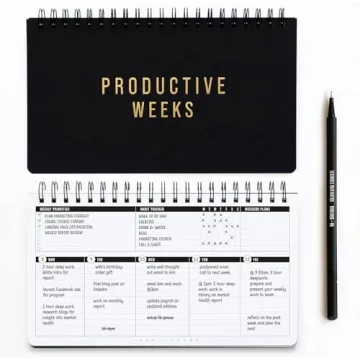 Recommended by numerous users, the quality of the paper offers a smooth writing experience, while the airy layout prevents feelings of overwhelm, making it an essential tool for anyone eager to reclaim control over their time and commitments. Experience the interplay of practicality and elegance as you turn each page towards your goals. Less