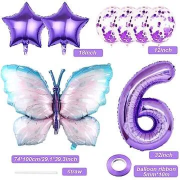Show moreTransform your child's birthday celebration into a magical butterfly wonderland with our enchanting Weenkeey 6th Butterfly Birthday Balloon Set. Crafted from high-quality aluminum foil and durable latex, these balloons are designed not only to impress but also to last through countless birthday celebrations. Featuring vibrant shades of purple and blue, they create an atmosphere of joy and excitement, ensuring that every moment spent at the party is memorable. Whether you're planning a small gathering or a larger bash, these balloons will effortlessly elevate your party theme and fill the space with festive spirit.