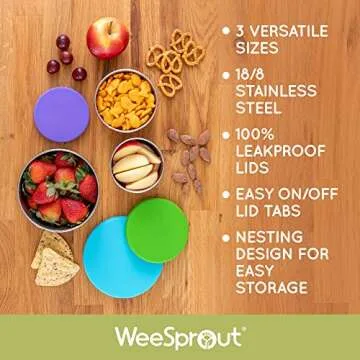 WeeSprout 18/8 Stainless Steel Food Storage Containers - Set of 3 (150 ml, 200 ml, 400 ml) Durable Metal with Leakproof Silicone Lids, for Lunch Box, Snacks & Leftovers