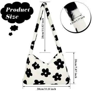 Weewooday Fluffy Flower Cow Plush Underarm Handbag for Women - Stylish Autumn Winter Tote Bag