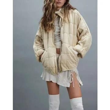 Wefebi Womens Dolman Quilted Lightweight Jackets Full-zip Stand Collar Loose Warm Winter Outwears with Pockets(0003-Beige-S)