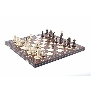 Show moreIntroducing the Wegiel Chess Set - Consul Chess Pieces and Board, a stunning fusion of craftsmanship and tradition that takes your chess experience to the next level. Handcrafted in Poland, this exquisite chess set features beautifully carved pieces created from high-quality beech and birch wood that promise durability alongside an impressive aesthetic appeal. With pieces measuring up to 3.54 inches (9 cm) for the King, each piece is not just a functional element of the game but a work of art that enhances the overall experience of playing chess. The elegant board, with its generous dimensions of 18.58"W x 18.58"D x 2.36"H (47cm x 47cm x 6cm), provides the perfect backdrop for your matches, featuring finely crafted felt bottoms to ensure smooth gameplay. Each square measures 1.85" x 1.85" (4.7cm x 4.7cm), contributing to a well-structured chess board that is as practical as it is beautiful.