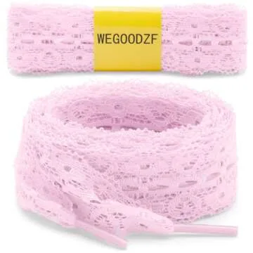 WEGOODZF Flat Lace Fancy Shoelaces: 3CM Wide Light Pink Lace Shoe Laces for Women 47 inch - 2 Pairs