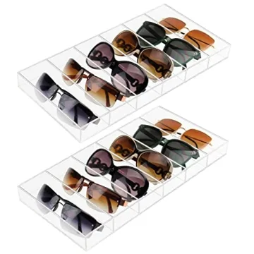 Weiai Acrylic Sunglass Organizer - 6 Slot Storage for Eyewear - 2 Pack, Clear