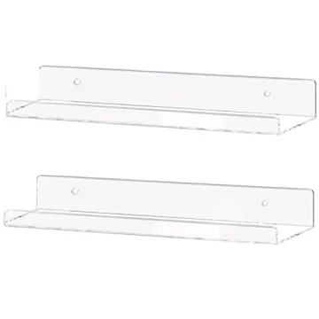 Show more Introducing the Weiai Clear Acrylic Shelf—your ultimate solution for stylish and practical organization! Measuring a versatile 15 inches, this invisible floating wall ledge bookshelf is designed to elevate your space while providing functionality that adapts to the changing needs of your home. Crafted from sturdy plastic, these shelves seamlessly blend into any decor, allowing you to showcase everything from kids' books to photo frames, nail polishes, and even your favorite collection of FUNKO figures!