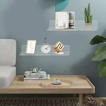 Weiai Clear Acrylic Shelves 12 Inch, Floating Wall Mounted Shelf for Bedroom, Living Room, Bathroom, Set of 3