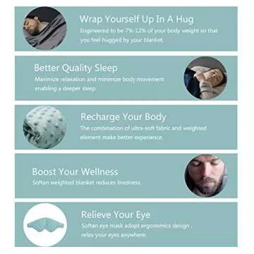 Imagine cocooning yourself in a layer of soft warmth at the end of a hectic day. This weighted blanket isn't just an ordinary fabric; it envelops you in comfort, giving you the gentle embrace that helps to alleviate stress and induce relaxation. The included weighted eye mask complements your journey into a peaceful slumber, enhancing your sleep experience beyond imagination. By choosing this blanket set, you are investing in nights filled not just with rest, but with a profound sense of nurture and wellness. Every night will feel like a soothing escape, making you look forward to sleep—because you know you are prioritizing not just sleep itself, but your overall health and happiness. Less