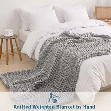 Weighted Idea Knit Weighted Blanket Queen Size (60" x80", 15lbs, Light Grey) Handmade Throw Blanket for Adults, Soft and Chunky, Best Gift for Christmas