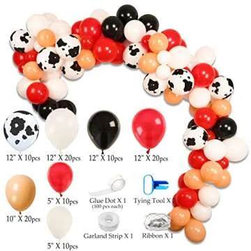 WEIKA Cow Party Decorations Garland Arch Kit, 104 Pcs Red White Cow Print Balloon for Farm Birthday Party Cow Birthday Decorations Graduation Bridal Baby Shower Girl Boy Party Supplies