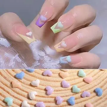 WEILUSI Mixed Macaron Color 3D Heart Nail Charms Gold Sliver Caviar Beads Nail Ball Beads - Acrylic Resin Heart and Mini Caviar Beads Nail Art Decorations 3D Design Decals DIY Manicures Accessories