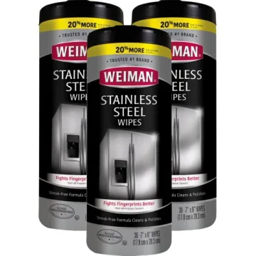 Show moreIntroducing the Weiman Stainless Steel Cleaning Wipes—the ultimate solution for maintaining the gleaming surfaces around your home. As the #1 SELLING STAINLESS STEEL BRAND, Weiman has built a solid reputation for producing reliable cleaners designed specifically for the unique needs of stainless steel. Gone are the days when cleaning felt like a chore; with these wipes, you can effortlessly clean, protect, and enjoy the pristine appearance of your stainless steel appliances.